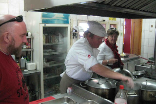 It was then into the kitchen to help prepare all the various indredients and then start to cook the various dishes being served for lunch, with Richard Knobloch and the restuarant owner Miriam Junge.